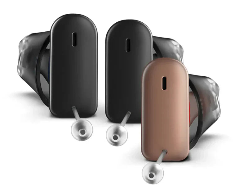 Receiver-in-Canal hearing aids are similar to Behind-the-Ear hearing aids in which they are worn behind the ear. The difference is that in RIC hearing aids, the speaker or receiver sits inside the ear canal. They can hold more processors, which makes them better for severe hearing loss. They are beneficial for people with high-frequency sensorineural hearing loss. Many brands carry a slimmer version of RIC, called Slim RIC, for users concerned about the size of the hearing aid.